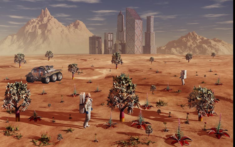 Buildings could be 3D-printed; initially, they would need to be pressurized and protected until Mars acquired Earthlike temperatures and air. NASA’s Moon-to-Mars Planetary Autonomous Construction Technologies program is researching how to do exactly this.