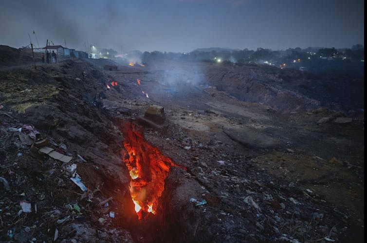 There are many coal seams around the world. Sometimes the coal even catches fire while it’s still in the ground. The cause can be natural, such as a lightning strike, or human activities like mining.