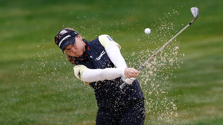 Brooke M. Henderson hits a bunker shot during a tournament in Grand Rapids, Mich., on June 12, 2025. Michael Miller/ISI Photos via Getty Images