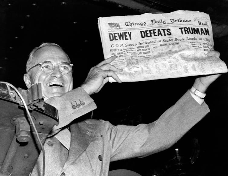 This variety helps explain why polling failure is so unpredictable and so jarring. The epic miscall of 1948 has never been duplicated in U.S. presidential elections – although the shock of Truman’s victory may have been rivaled by the profound surprise that accompanied Donald Trump’s win in 2016.