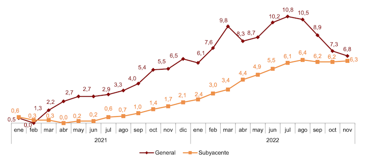 After beginning 2022 with inflation at 6.1%, Spain’s consumer price index peaked at 10.8% in July before closing out the year at a rate of 6.8%. Taking into account the 2021 inflation journey from 0.5% in January, to 2.9% in July and 6.5% in December, it now looks like price rises are being brought under control.