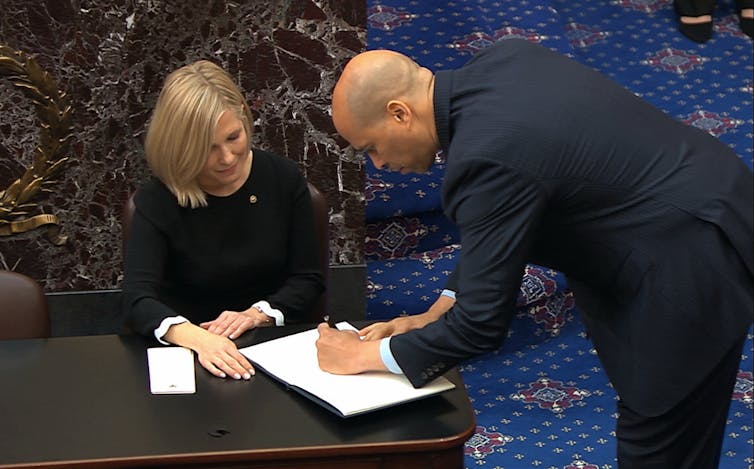 Senate rules also require that each senator taking the oath memorialize that action by signing an official register.