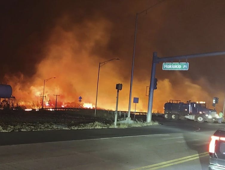 Fires were still burning on Aug. 10, both in Maui’s tourist-filled west coast and farther inland, as well as on the Big Island of Hawaii. Dry grasses and strong winds, influenced by Hurricane Dora passing far to the south, heightened the fire risk.