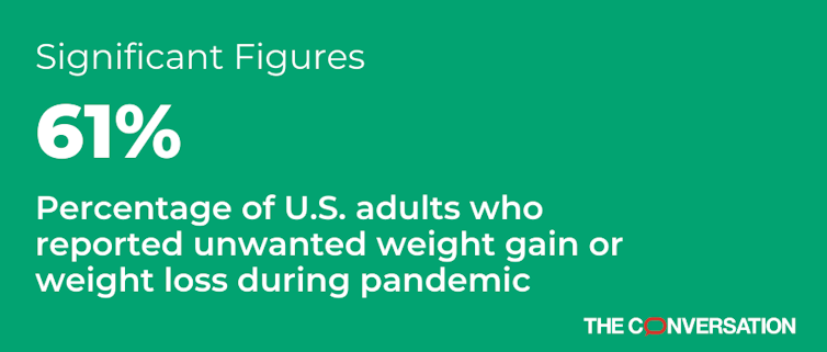 If you have experienced unwanted weight gain or weight loss during the pandemic, you are not alone. According to a poll by the American Psychological Association, 61% of U.S. adults reported undesired weight change since the pandemic began.