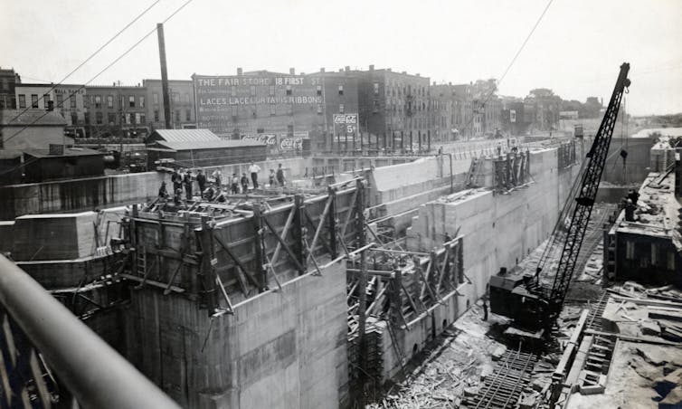 They built canals to move freight in the 1830s and 1840s. Governments subsidized railroads in the mid- and late 19th century. They created local sewage and water systems in the late 19th and early 20th centuries, and then dams and irrigation systems through much of the 20th century. During World War II, massive amounts of public money were spent building and expanding ports, factories, airfields and shipyards. And after the war, highway construction – long a state and local project – became a federal endeavor.