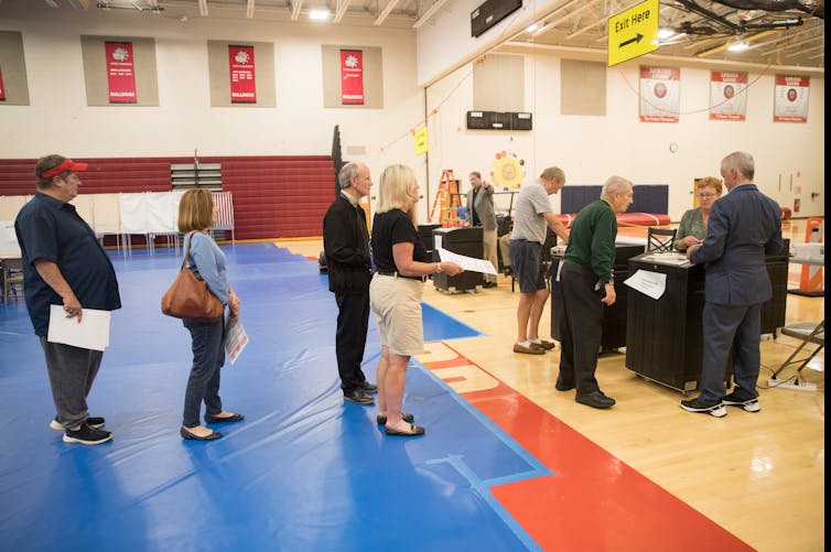 When we analyzed differences in the share of voters by race, income and education levels, we found nearly equal levels of vote shares for these groups in both midterm and presidential elections. Yes, turnout is lower in all these midterms compared with presidential elections. But the representation of different voter groups is about the same – except for age.