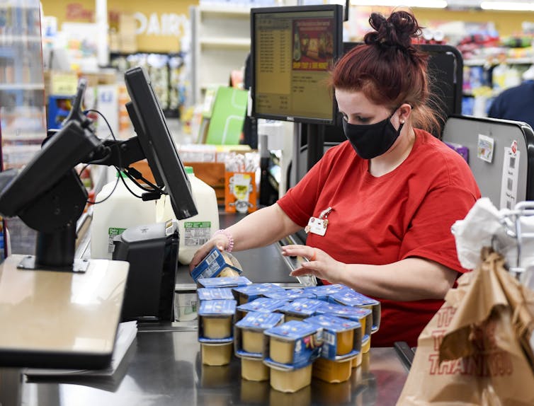 The stressful situation for grocery workers may be amplified in the coming months. The National Retail Federation forecasts a busy holiday shopping season. It may even eclipse last year’s records despite increasing inflation rates and supply shortages. This is against the backdrop of increasing COVID-19 cases across the country. And as of Nov. 24, 2021, not quite 63% of the eligible U.S. population is fully vaccinated yet.