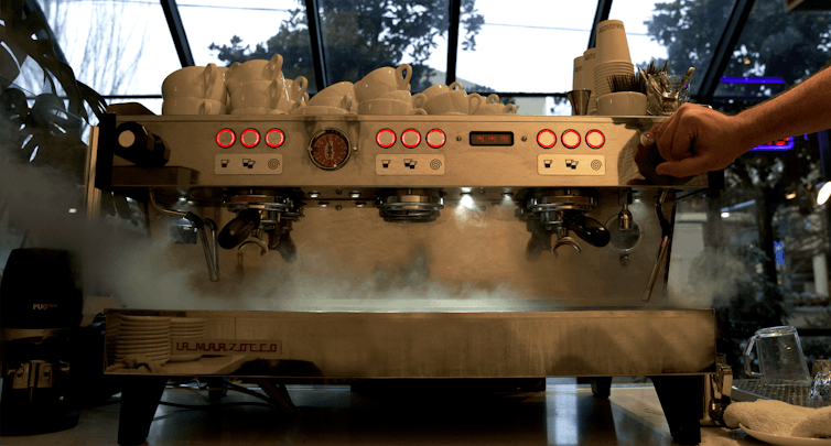 To make espresso, hot water is forced through a finely-ground bed of coffee. The barista makes decisions about how much coffee and water to use, and how finely the coffee is ground. The machine’s water pressure, temperature and brew volume are also crucial when it comes to taste. Together, these parameters control the relative proportion of around 2,000 different chemicals – a delicate balancing act.