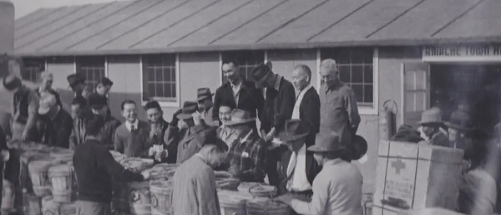 The Minetas arrived at the Santa Anita Assembly Center in Arcadia, California, in May 1942, and six months later were transferred to the Heart Mountain Relocation Center near Cody, Wyoming. During the war years, the Minetas and those incarcerated at nine other camps run by the government’s War Relocation Authority lived behind barbed wire, under searchlights, with armed soldiers in guard towers pointing guns at them.