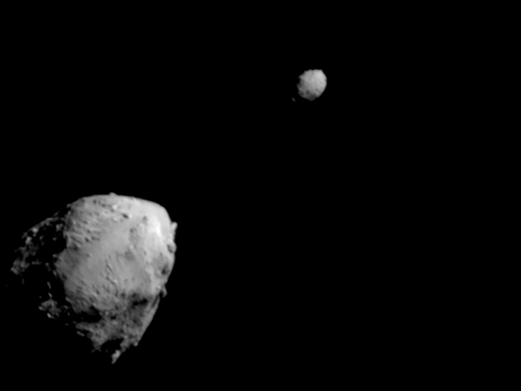 The first images, taken by a camera aboard DART, show the double asteroid system of Didymos – about 2,500 feet (780 meters) in diameter – being orbited by the smaller asteroid Dimorphos, which is about 525 feet (160 meters) long.