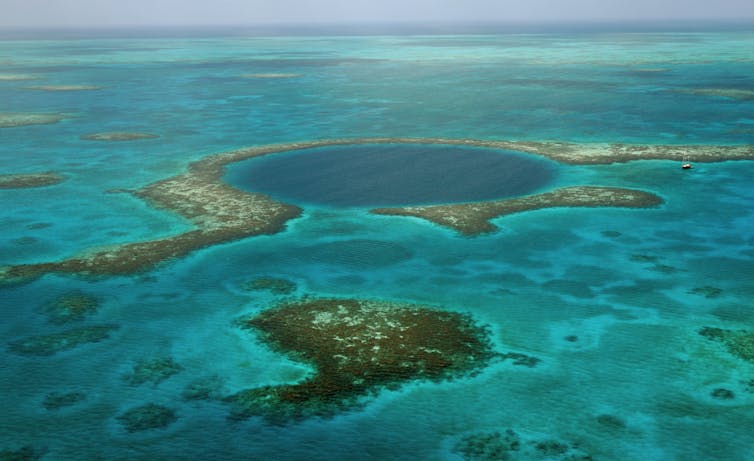 They tend to have deep vertical walls that can trap sediments – including sand transported by strong hurricanes. Fortuitously, deep blue holes often have little oxygen at the bottom, which slows decay, helping to preserve organic matter in the sediment through time.