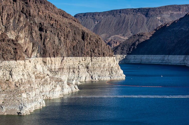 This system relies on what hydrologists call hydraulic head – the amount of liquid pressure above a given point. The higher the level of water above the turbines in Lake Powell and Lake Mead, the more hydraulic head they have and the more power they will generate.