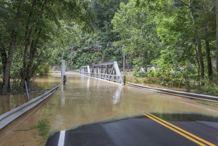Since water runs downhill, rainfall will seek the lowest point in a potential pathway. In urban areas, that’s often streets, parking lots and basements in low-lying zones. In rural areas with steep terrain, such as Appalachia, flash flooding can turn creeks and rivers into raging torrents.